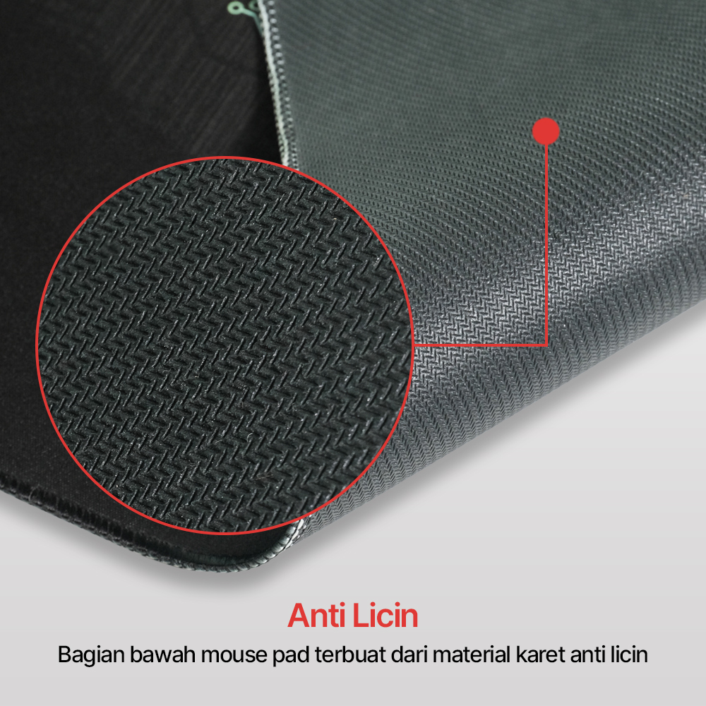 Anti Licin Bagian bawah mouse pad terbuat dari material karet yang anti licin. Mouse pad akan tetap stabil tertempel di meja meskipun mouse Anda bergerak dengan cepat. Kegiatan bermain game atau bekerja pada desktop Anda pun lebih nyaman.