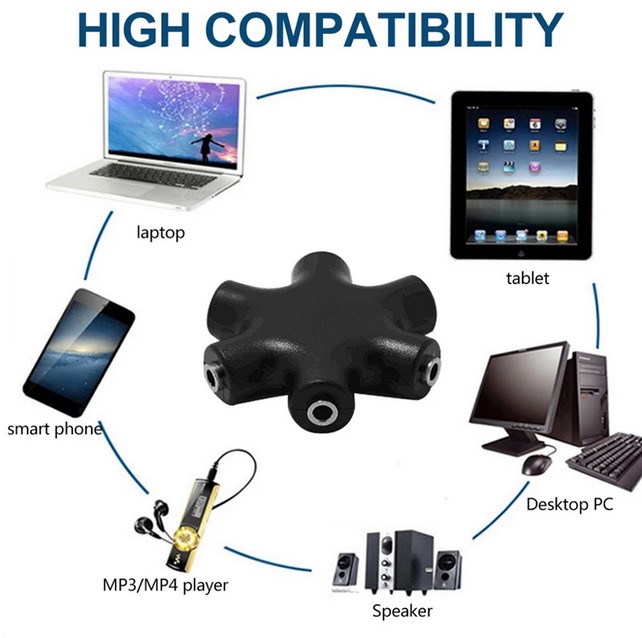 Adaptor 3.5 mm jack audio ini dapat Anda gunakan untuk sharing atauberbagi lagu kepada keluarga Anda dengan satu input audio secara bersamaan ke 5 output. Mode ke dua adalah 5 input dan 1 output yang memungkinkan Anda mendengar 5 lagu secara bersamaan pada satu earphone menjadi suatu mix song atausound. Fitur 1 Input dan 5 Output 3.5 mm Jack adaptor ini dapat Anda gunakan untuk sharing atau berbagi lagu ke5 earphone atau speaker sekaligus, sehingga Anda dapat mendengarkan lagu bersama dengan teman.