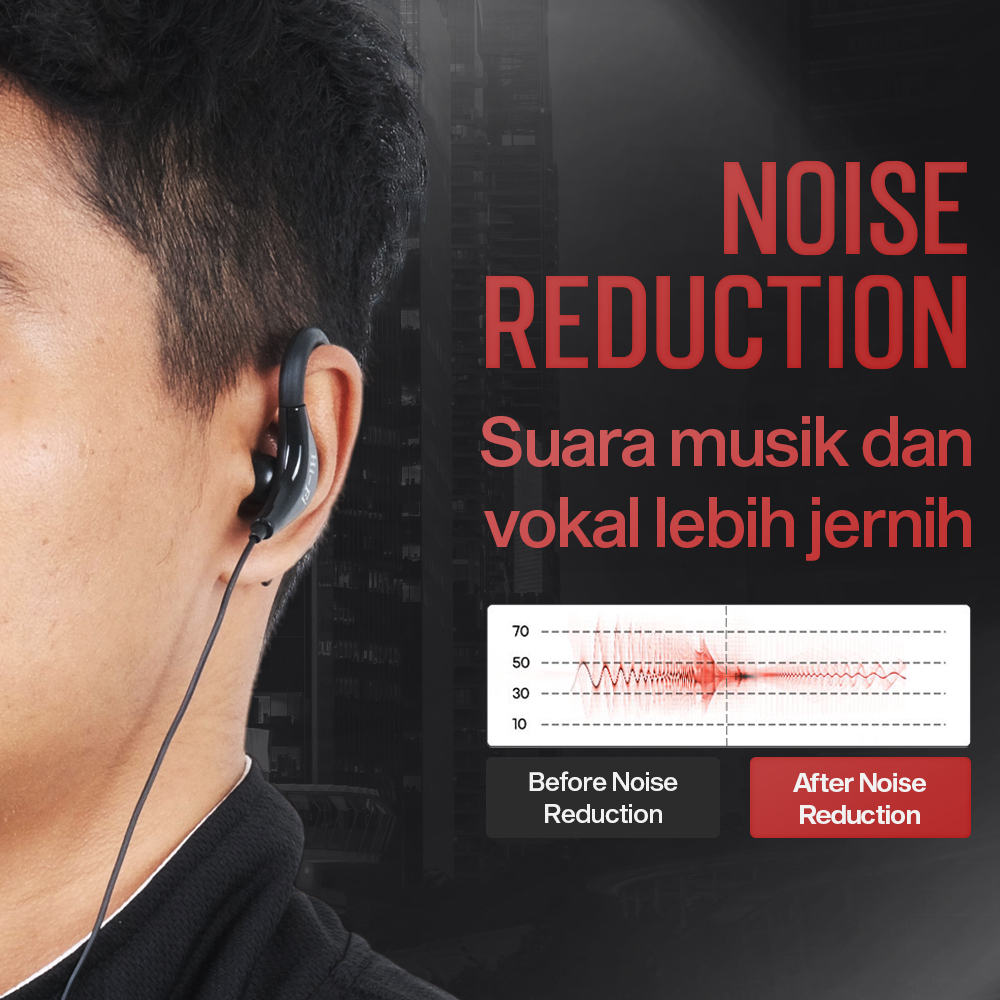 Suara Jelas dengan Noise Reduction Dilengkapi mikrofon berkualitas dengan fitur noise reduction, earphone sport dapat digunakan untuk menerima panggilan telepon.
