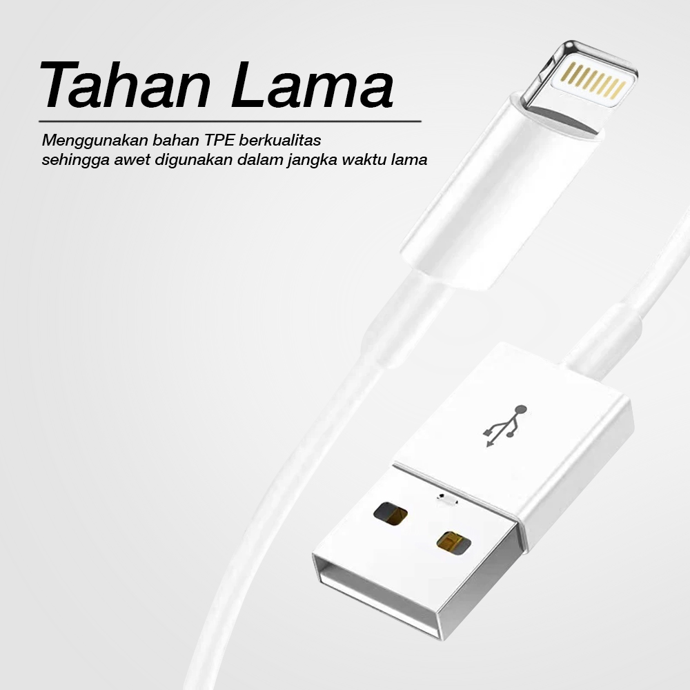 Spesifikasi Panjang Kabel: 1 M Tipe Plug Kabel: USB to Lightning Material: TPE Arus: 2.4 A
