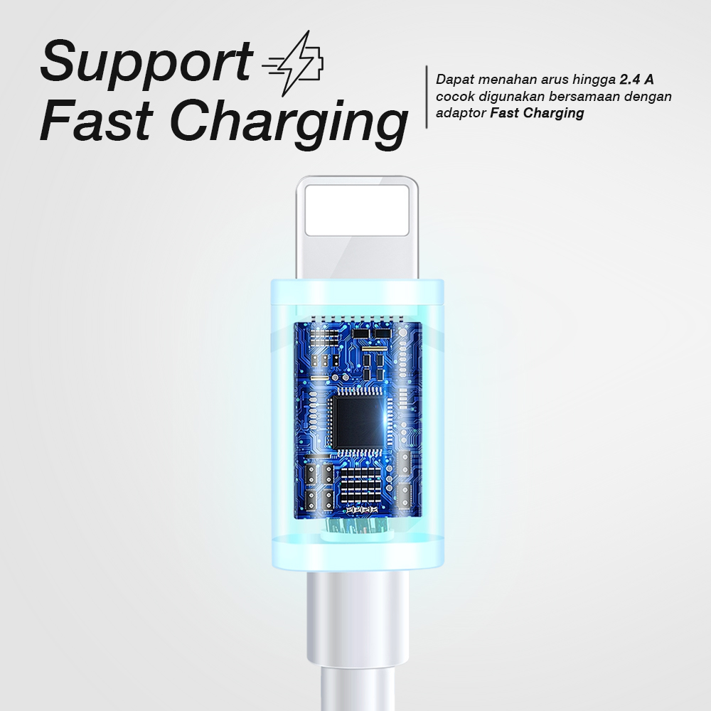 Untuk Anda yang sedang mencari kabel Lightning, produk yang satu ini merupakan pilihan yang tepat. Perpaduan fitur fast charging dan fitur transfer data membuat kabel ini jadi solusi tepat untuk Anda yang serba praktis. Semakin lengkap dengan material TPE yang kuat sehingga kabel tidak mudah rusak. Fitur Mendukung Fast Charging Kabel data ini telah mendukung fitur fast charging sehingga bisa menghemat waktu pengisian daya. Dapat menghantarkan daya hingga 2.4 A yang cocok digunakan bersama adaptor fast charging. Kini Anda tak perlu membuang banyak waktu untuk mengisi daya gadget.