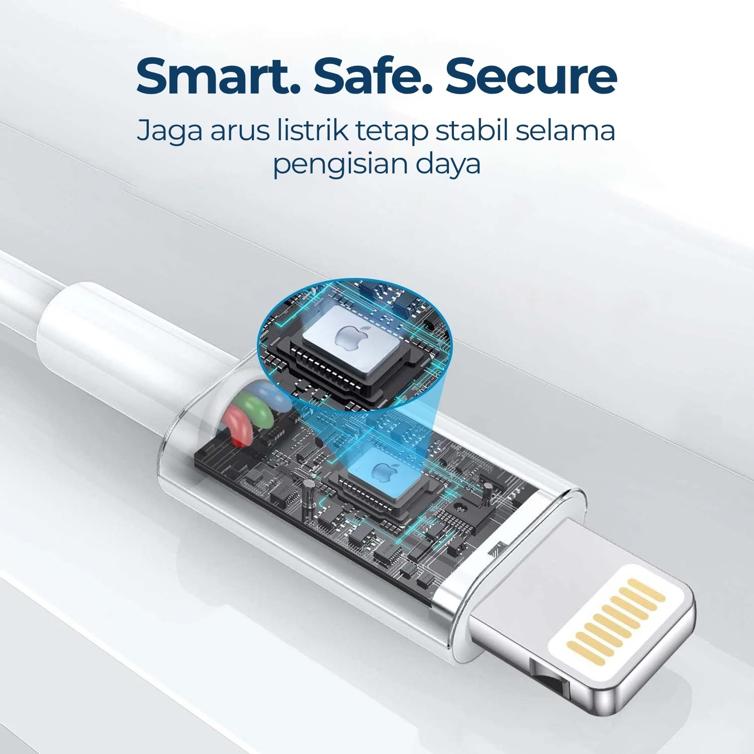 Perlindungan Maksimal Plug kabel data dilengkapi dengan chip pintar untuk melindungi smartphone Anda dari overcharge, overheat, dan korsleting saat digunakan. Jaga kondisi gadget agar tidak mudah rusak.