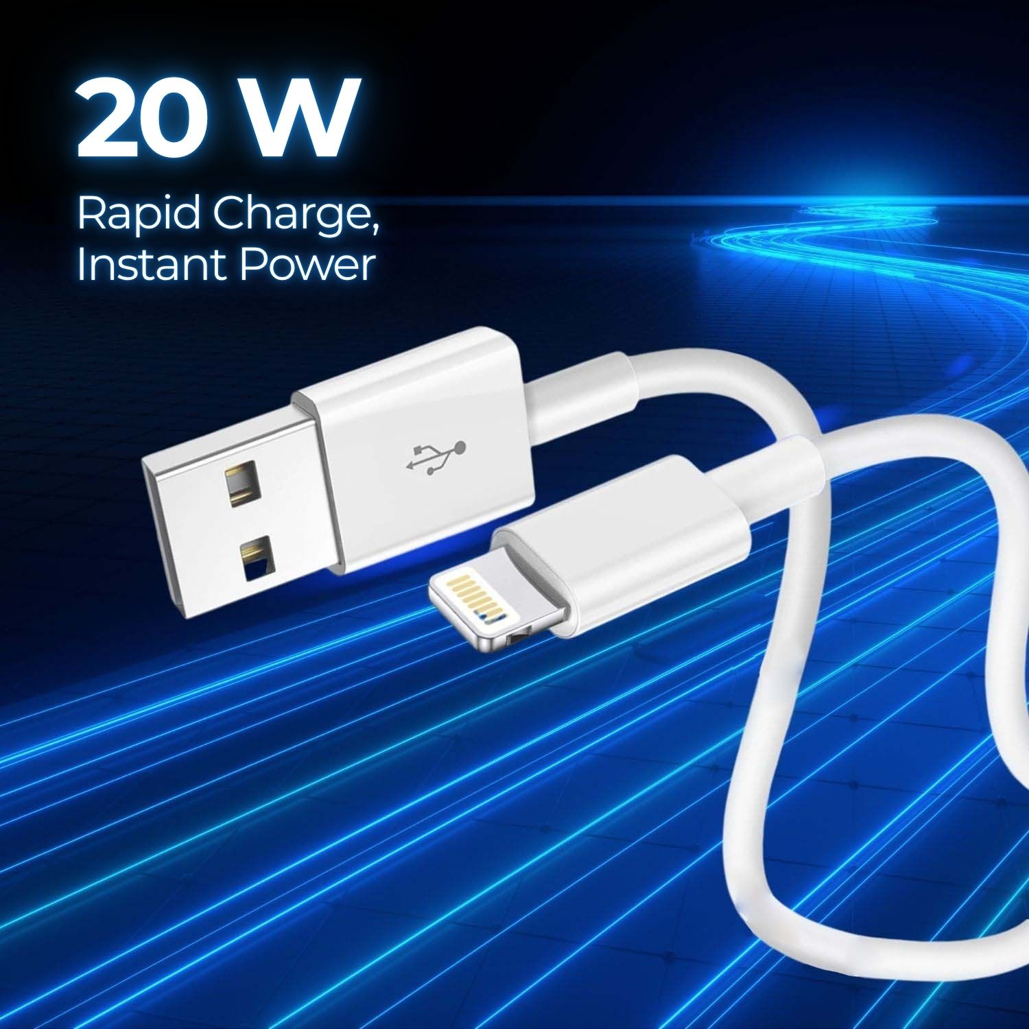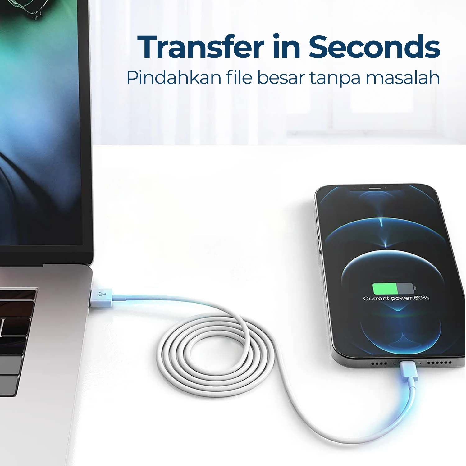Mengisi daya berbagai perangkat Apple kini semakin praktis dengan kabel data ini. Plug lightning dapat menghantarkan daya hingga 20 W untuk menghemat waktu pengisian daya. Anda juga bisa menggunakan kabel ini untuk mentransfer data dengan kecepatan tinggi untuk berbagai kebutuhan. Fitur Isi Daya dalam Sekejap Tak perlu menunggu lama untuk mengisi daya smartphone dan gadget lainnya. Kabel data ini sudah mendukung fitur fast charging dengan output daya hingga 20 W.