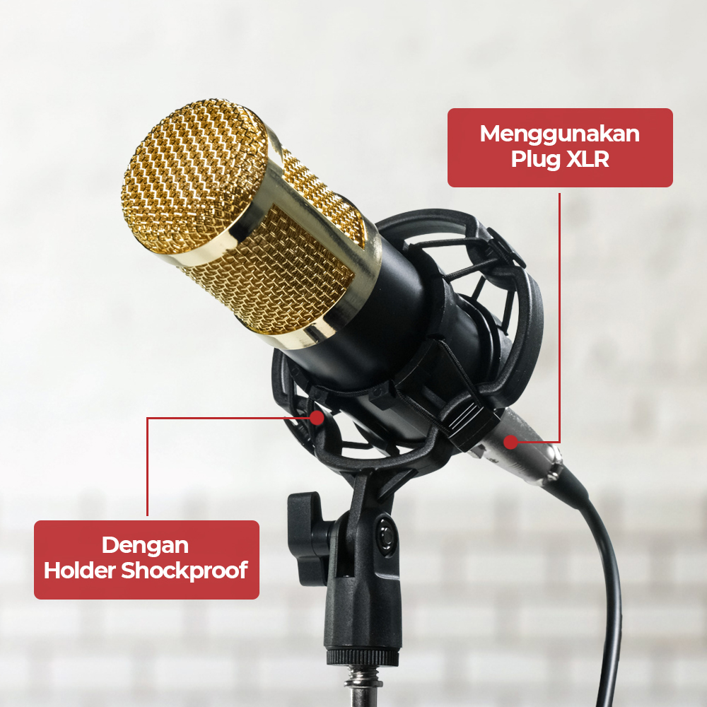 Shock Mount untuk Redam Getaran Dilengkapi shockproof mount yang berfungsi meredam getaran akibat sentuhan meja atau pergerakan kecil. Membantu menjaga kualitas rekaman tetap stabil. Cocok digunakan untuk podcasting dan recording di rumah maupun studio kecil.Anda juga bisa menggunakan stand khusus seperti produk MS-70B.