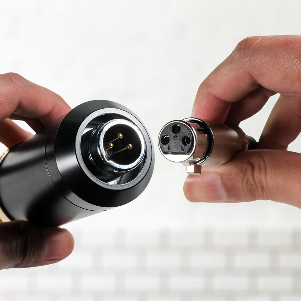 Plug XLR ke Audio Jack 3.5 mm Menggunakan koneksi XLR yang umum dipakai pada mikrofon studio. Disertakan kabel XLR ke jack 3.5 mm untuk penggunaan dasar ke laptop atau PC. Untuk hasil yang lebih stabil dan optimal, disarankan menggunakan phantom power 48 V atau audio interface.