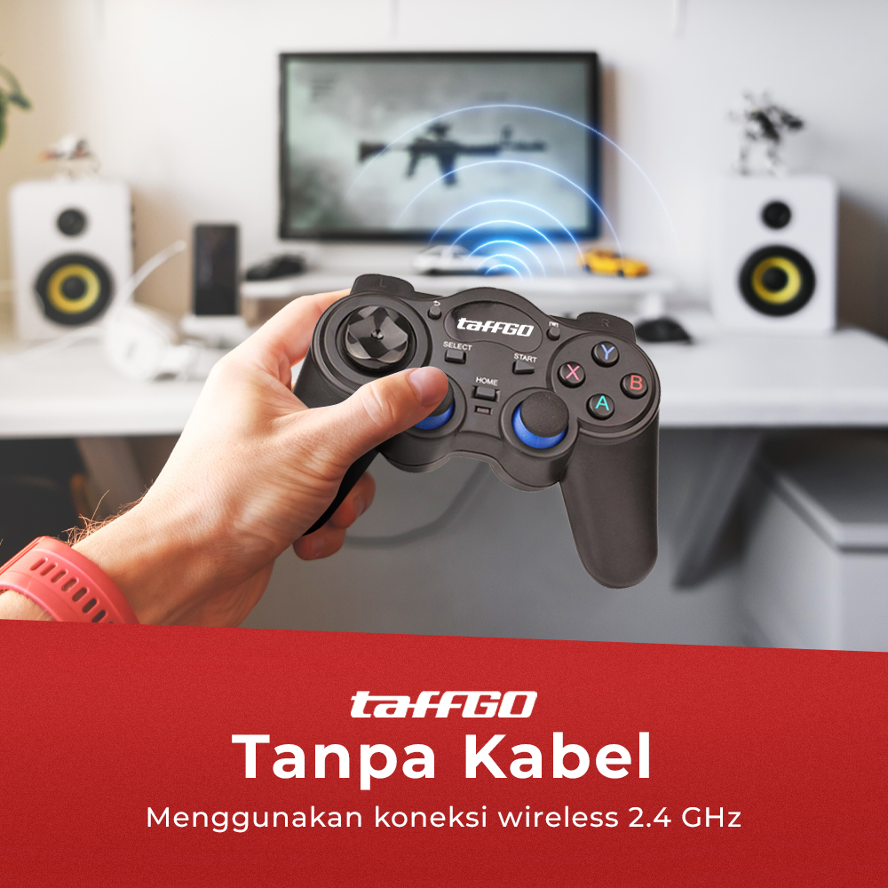 Overview Tingkatkan pengalaman bermain game dengan TaffGO Wireless Gamepad 2.4 GHz. Hadir dengan desain ergonomis ala DualShock yang nyaman digenggam dan mudah digunakan. Koneksi wireless stabil via USB dongle membuat bermain lebih bebas tanpa kabel. Cocok untuk PC, laptop, Android TV Box, dan smartphone Android. Fitur Desain Tombol Ergonomis Wireless gamepad ini dirancang dengan tata letak tombol ergonomis yang menyerupai kontroler DualShock. Posisi tombol yang familiar memudahkan pengguna langsung bermain tanpa perlu waktu adaptasi lama. Desain ini juga membantu menjaga kenyamanan tangan saat bermain dalam durasi panjang.