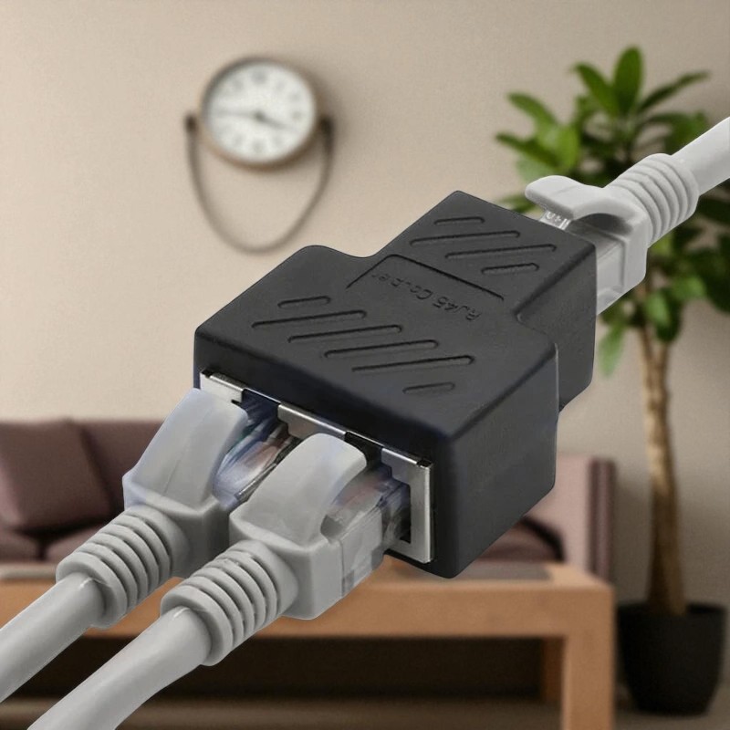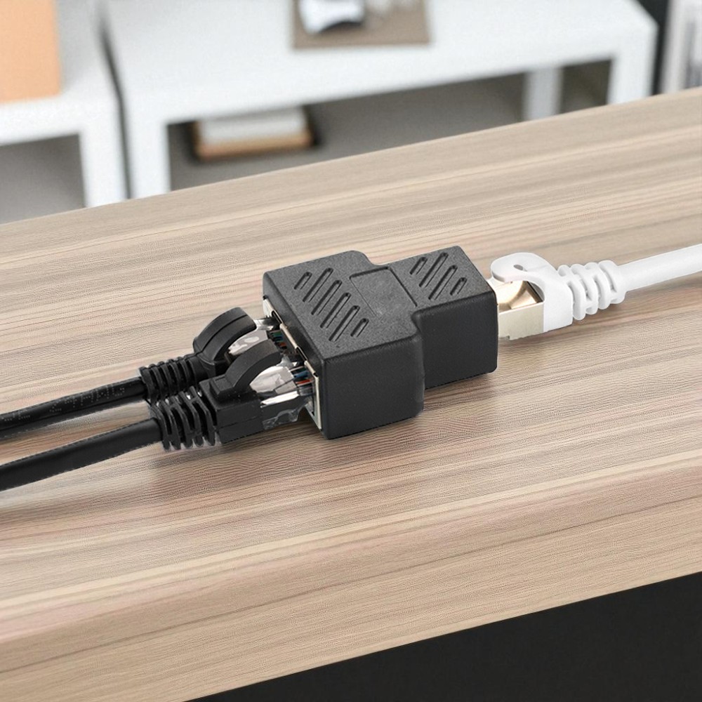 Fungsi Splitter Splitter ini memiliki dua port female LAN RJ45, tetapi hanya dapat digunakan untuk satu laptop atau PC pada satu waktu. Splitter ini berguna bila Anda sering berpindah ruangan saat memakai laptop dengan koneksi kabel LAN. Anda tidak perlu lagi melepas dan memasang kabel LAN ke router setiap kali pindah ruangan. Cukup gunakan satu splitter yang terhubung ke router, lalu pasang dua kabel LAN pada port yang tersedia. Dari dua kabel tersebut, Anda bisa menempatkannya di ruangan berbeda. Catatan: hanya satu perangkat yang dapat terhubung ke internet, tidak bisa dua sekaligus.