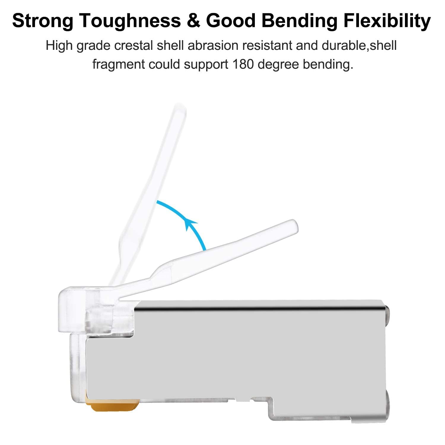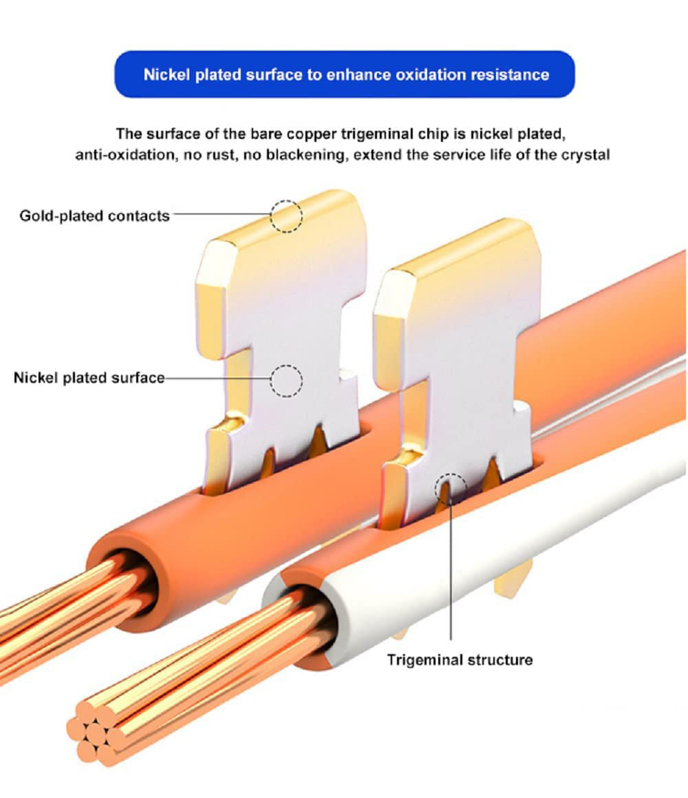 Kepala RJ45 terbuat daricrystal shell dan paduan nickel plated serta gold plated copper yang tahan lama.