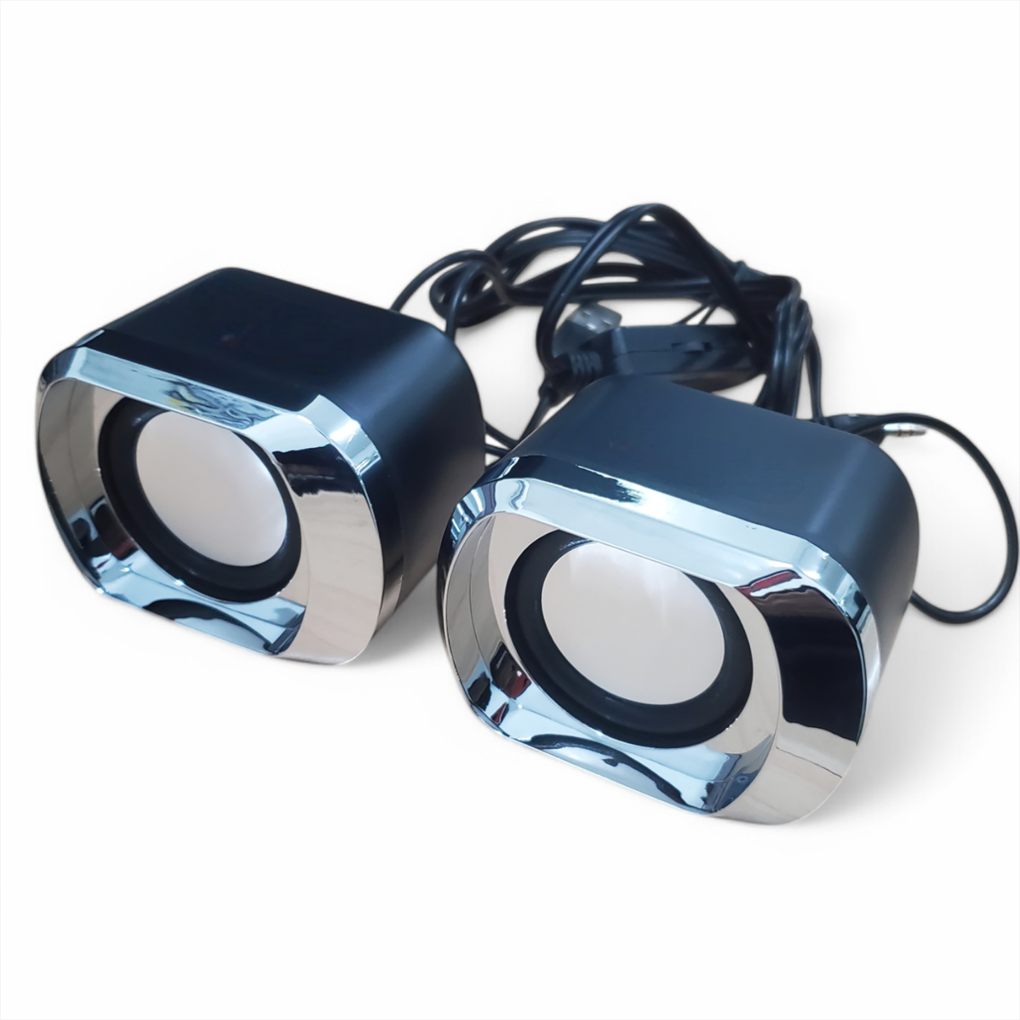 Desain Elegan Speaker ini mengusung desain minimalis dan elegan dengan balutan warna silver dan hitam di bagian depannya. Setup meja kerja Anda semakin keren dengan speaker stereo ini.