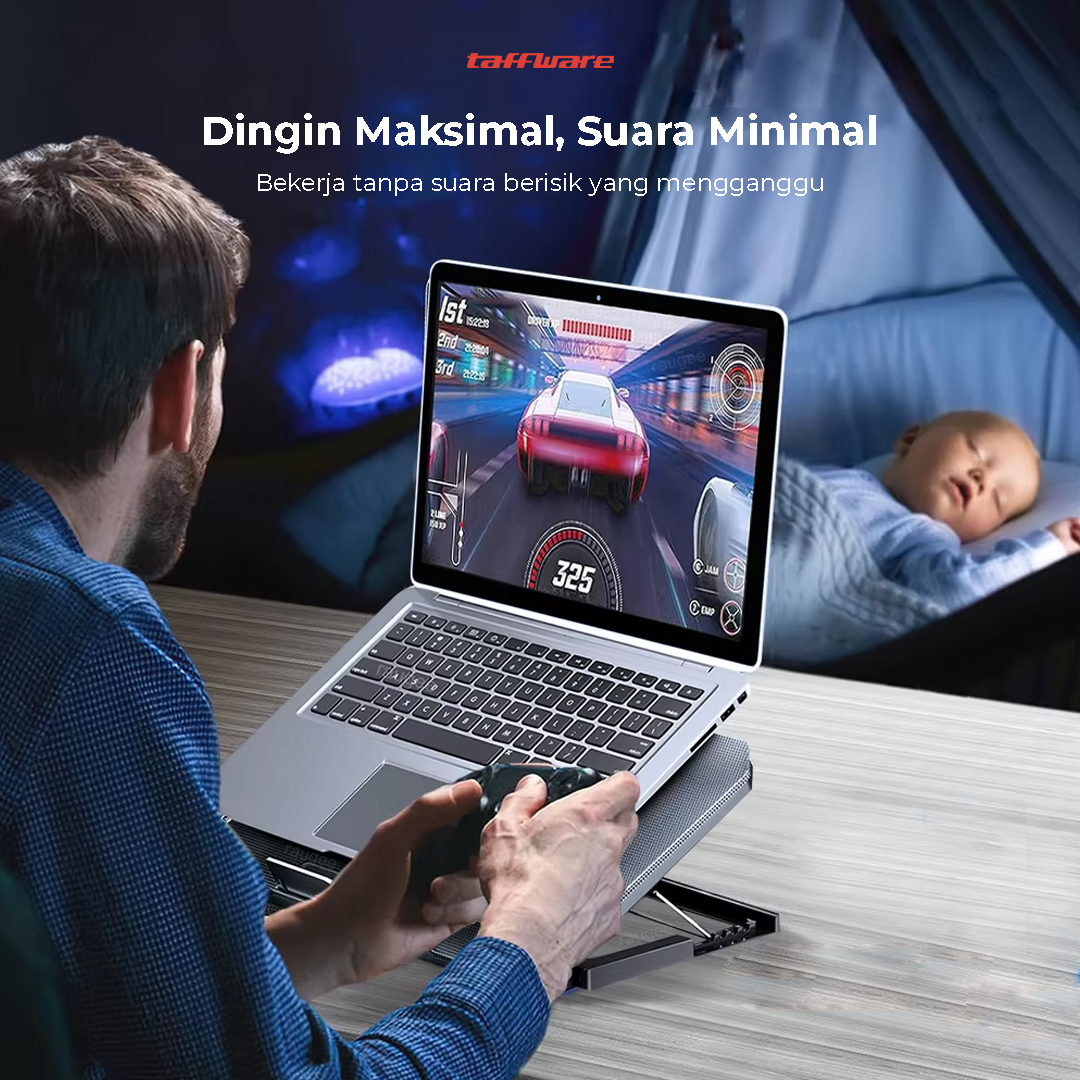 Kinerja laptop menurun karena overheat? Cooling pad laptop dari Taffware hadir dengan 2kipas besar dankencang. Kinerjanya senyap dengan posisi ketinggian yang fleksibel bikin aktivitas kerja atau gaming makin nyaman tanpa panas mengganggu. Fitur Laptop Dingin Merata Dilengkapi dua kipas bertenaga tinggi yang berputar dengan kecepatan maksimal untuk menyebarkan udara dingin secara merata ke seluruh permukaan laptop. Panas berlebih langsung teratasi, performa tetap stabil, bahkan saat multitasking berat atau gaming intens.