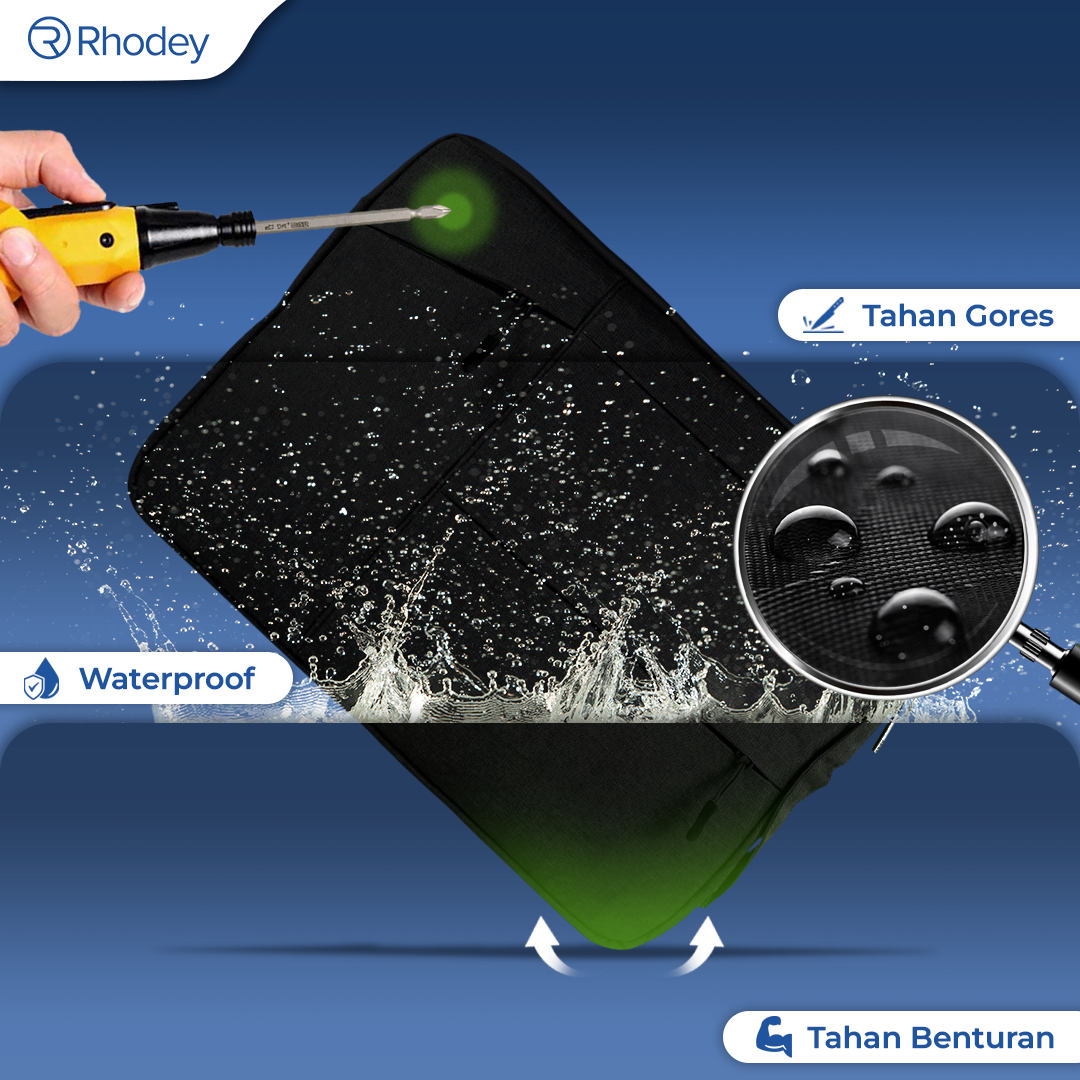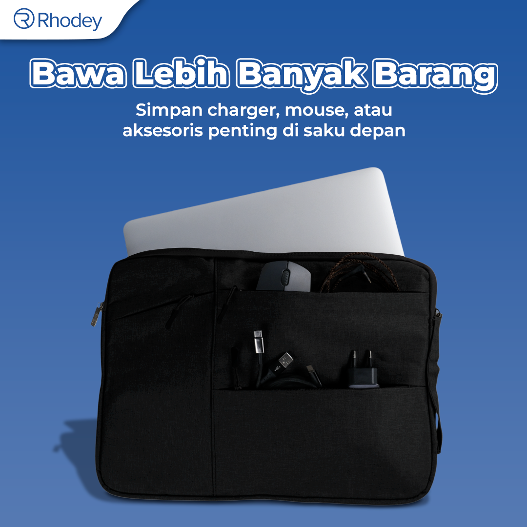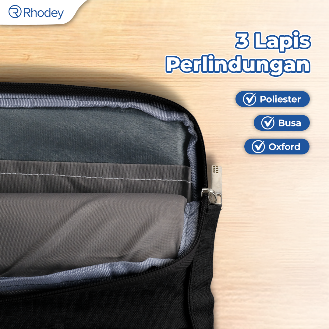 Double Ritsleting Lebih Aman Sleeve case Rhodey dilengkapi double ritsleting untuk meningkatkan keamanan. Model ritsleting ini juga memudahkan Anda mengambil barang tanpa harus membuka seluruh sleeve case tas.