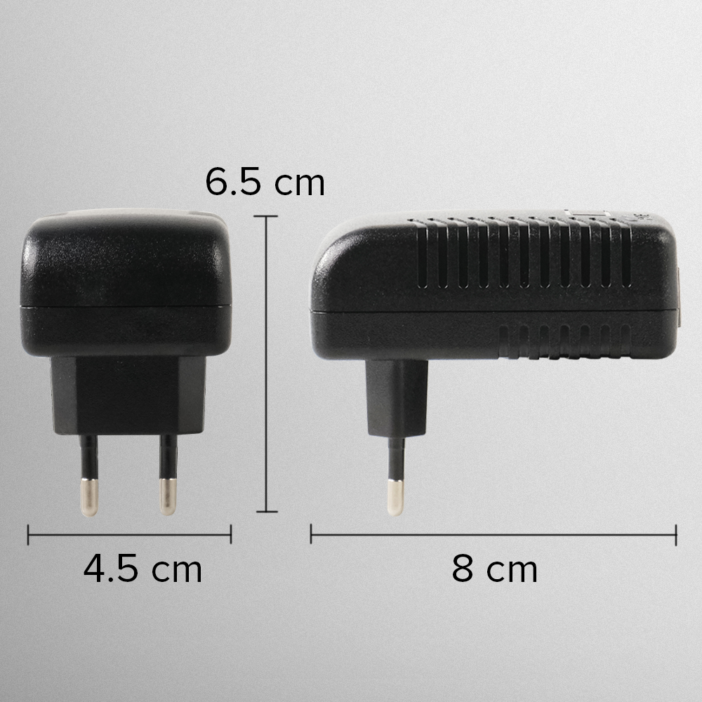 Spesifikasi Material: Plastik Dimensi: Keseluruhan: Sekitar 8 x 4.5 x 6.5 cm Lain-lain: Voltase Input: 100-240 V AC 50/60 Hz