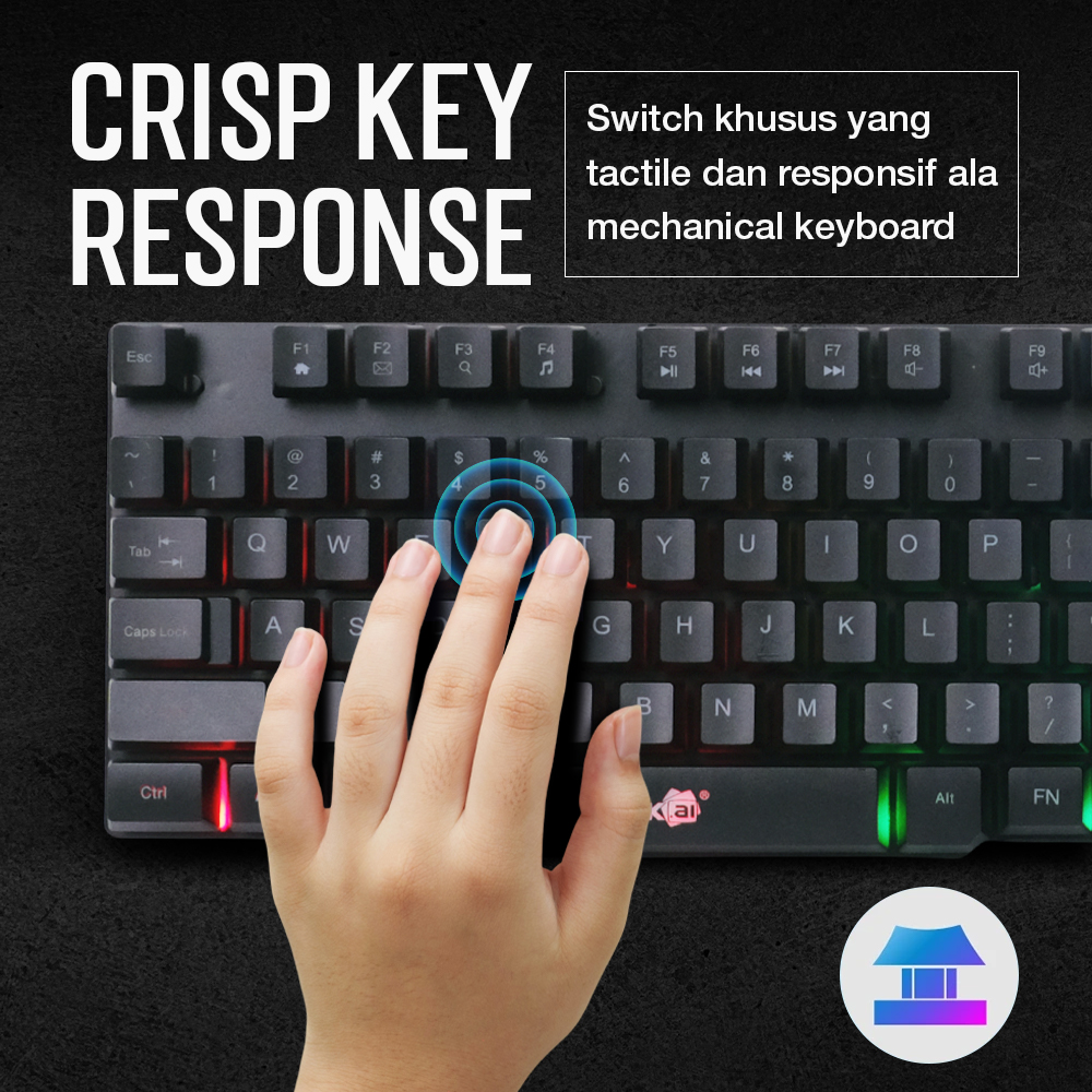 Dibekali switch khusus, gaming keyboard dapat memberikan respon yang cepat. Rebounrd yang kuat hasilkan feel tactile khas mechanical keyboard.