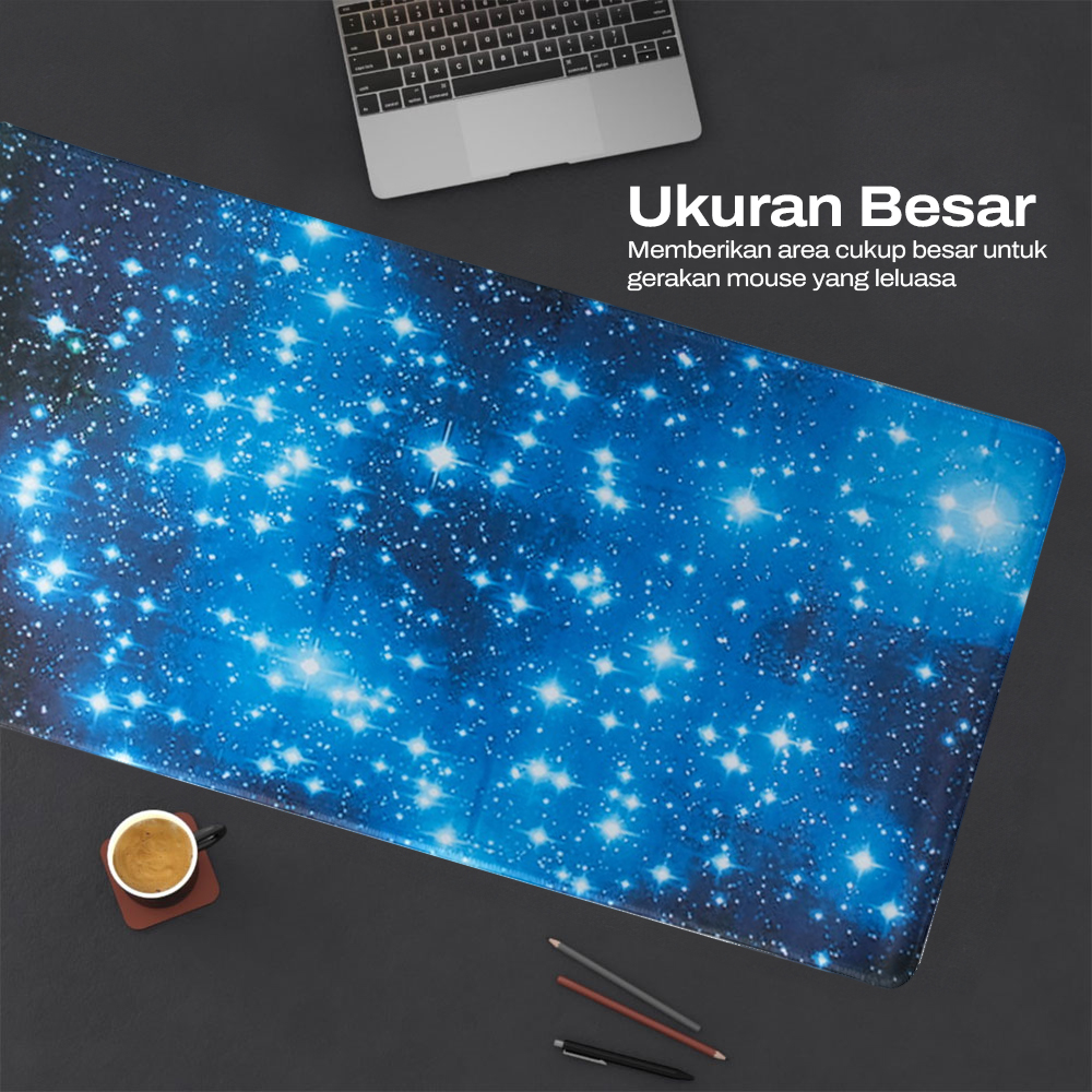 Desain yang Keren dan Unik Mouse pad ini bukan hanya tentang kinerja, tetapi juga tentang gaya. Desain estetik langit penuh bintang membuat mouse pad ini dapat mempercantik tampilan setup PC ataupun laptop Anda di rumah.